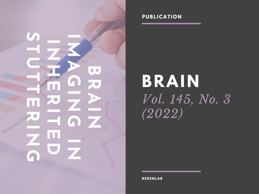 The team identified a significant age by group interaction effect for cortical thickness in the left hemisphere pars opercularis (Broca’s area). In affected family members this region failed to follow the typical trajectory of age-related thinning observed in controls. Surface area analysis revealed the middle frontal gyrus region was reduced bilaterally in the family (all cortical morphometry significance levels set at a vertex-wise threshold of p < 0.01, corrected for multiple comparisons). Both the left and right globus pallidus were larger in the family than in the control group (left p = 0.017; right p=0.037), and a larger right globus pallidus was associated with more severe stuttering (rho =0.86, p=0.01). No white matter differences were identified. Genotyping identified novel loci on chromosomes 1 and 4 that map with the stuttering phenotype.